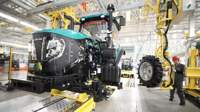 從智能化生產(chǎn)到數(shù)字化管理,從精密工藝到高端產(chǎn)品,這座“綠色智慧工廠”全面對標(biāo)世界一流,開國內(nèi)農(nóng)機(jī)行業(yè)“智造”之先。“5G+工業(yè)互聯(lián)網(wǎng)”平臺將機(jī)加、裝配、物流等環(huán)節(jié)無縫銜接,生產(chǎn)線從第一道工序到最終檢測,通過智能管理系統(tǒng)與數(shù)字化設(shè)備,全程實(shí)現(xiàn)了高度智能化——機(jī)加自動化率達(dá)93%、焊接自動化率 72%,涂裝自動化率 95%,裝配自動化率更是處于行業(yè)領(lǐng)先水平,產(chǎn)品一致性達(dá)到國際頂尖水平。