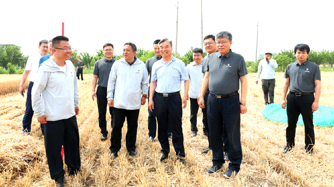 在南陽市唐河縣,葉建軍詳細(xì)了解了收獲機(jī)械新產(chǎn)品研發(fā)和試驗進(jìn)展情況,觀摩了提質(zhì)減損項目試驗過程。現(xiàn)場黨員干部還一起開展了“大國糧安 有我一份”主題黨日活動。